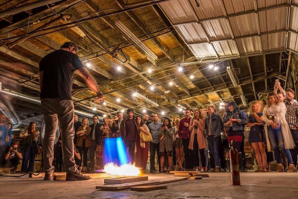 The Delta team begins experimenting with burning wood using a torch, unaware we were reviving the traditional Japanese technique of burning wood, shou-sugi-ban.