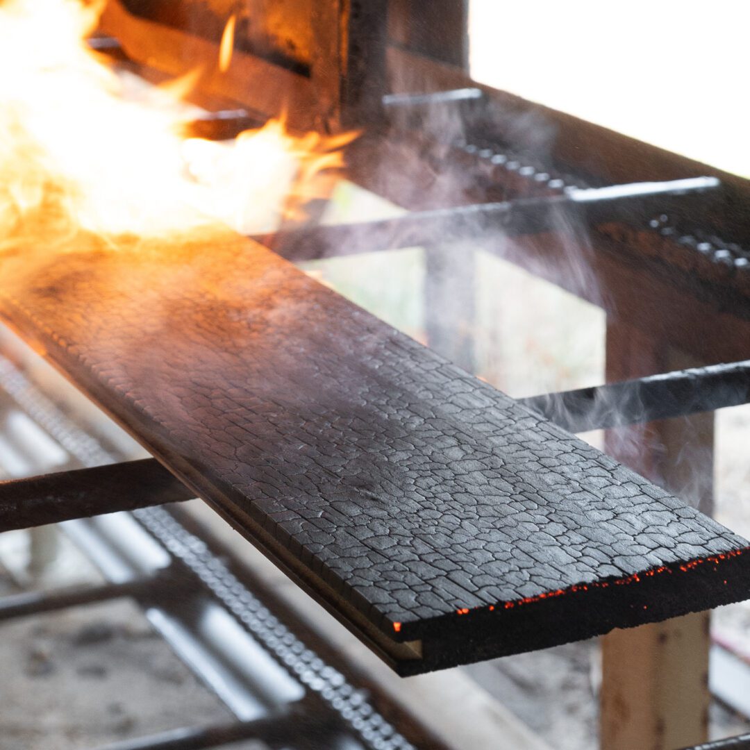 Delta Millworks began burning wood in 2007, and we were instantly enthralled by the beautiful textures and grain patterns achieved by taking torches to timbers and boards. Shortly after beginning the craft, we realized we were reviving the Japanese tradition of “shou-sugi-ban.” This process is used to preserve the wood by charring it. The heavily-charred surface of the board makes the wood fire retardant as well as resistant to rot, insects and decay.