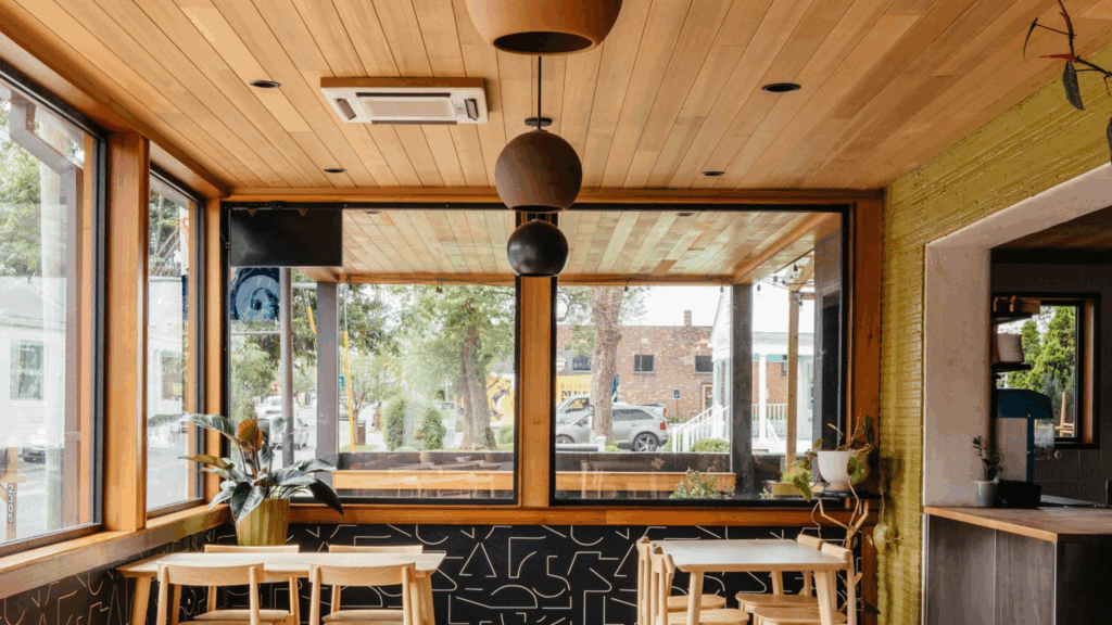 At this Nashville restaurant, our Western Red Cedar sets the tone for a cozy, welcoming atmosphere. The cladding evokes the comfort of a living room or kitchen, encouraging guests to relax and savor the inviting environment.