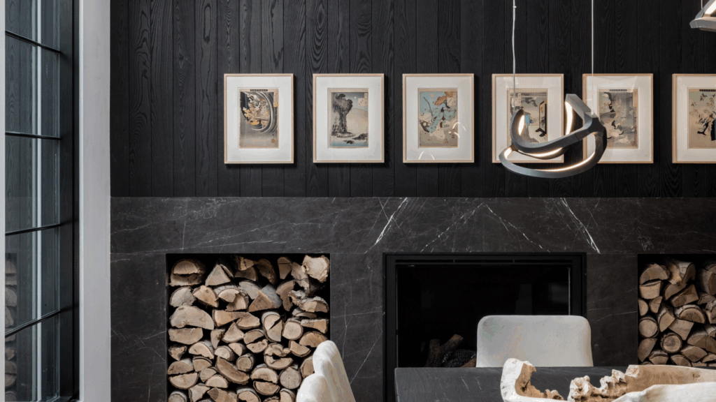 Delta’s Accoya charred wood, presented in varied tones, adds depth and texture to this multifaceted interior. The natural material fosters a sensory connection to nature, grounding the space and encouraging a sense of calm and balance throughout the home.