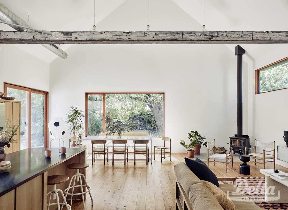 Older wood salvaged from pre-existing structures has stood the test of time; it is well-seasoned, stable, and durable, making it ideal for thick flooring, siding, cladding, decks, or ceiling beams.