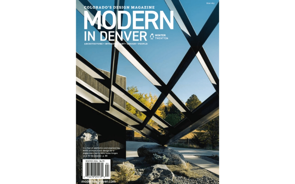 Origami House was recently featured in Modern in Denver. “We used a very heavily wire brushed Accoya wood with a deep, deep black stain that lasts for years and years here,” says Kevin Stephenson, principal of BOSS.architecture. “That’s a material that bridges indoor and outdoor, and helps simplify the geometries of the house.”