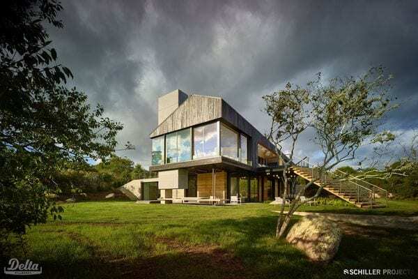 These simple, dark buildings are approached via a farm road that winds through the town’s dense thicket of scrub oak. A broad stair links a large south-facing porch back to the farm road and provides pedestrian access through the field to the beaches beyond. Read more here.