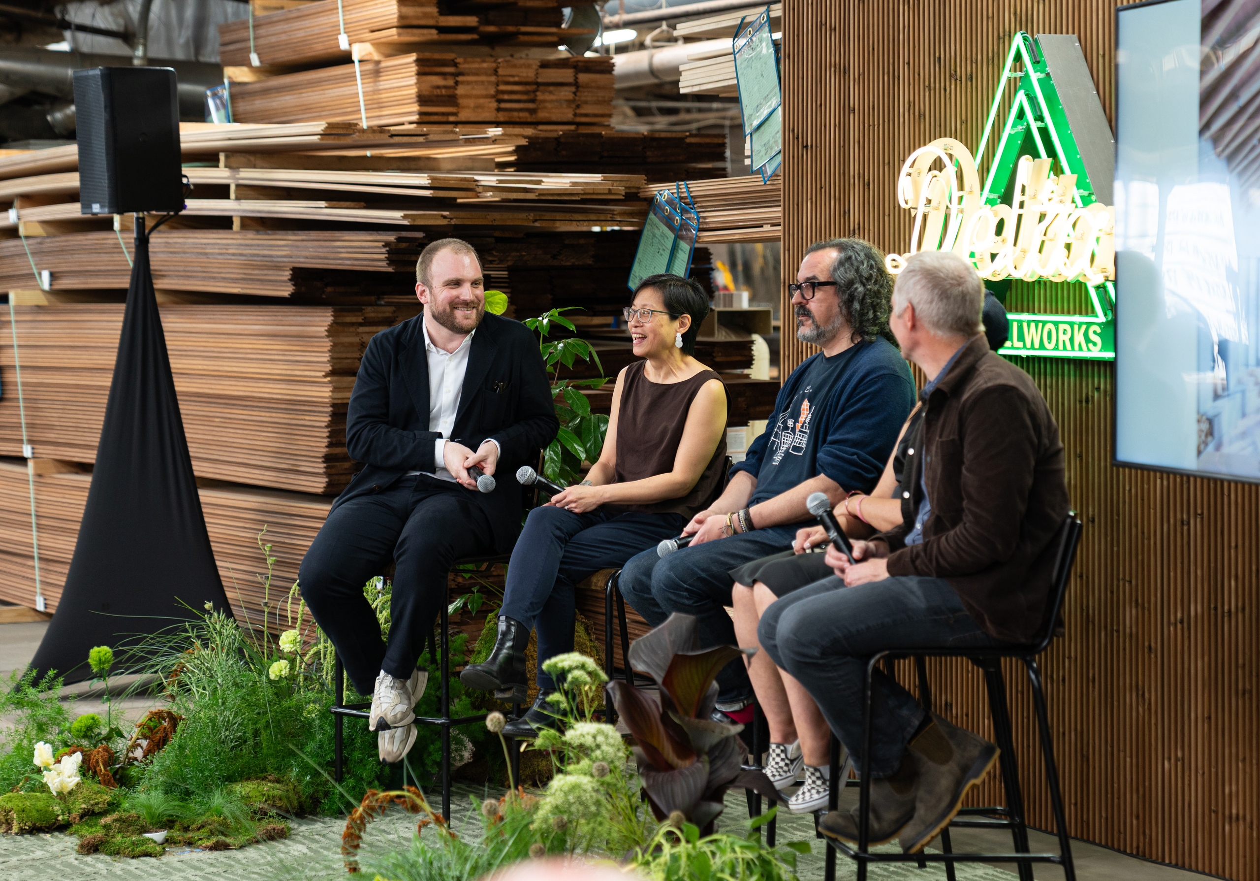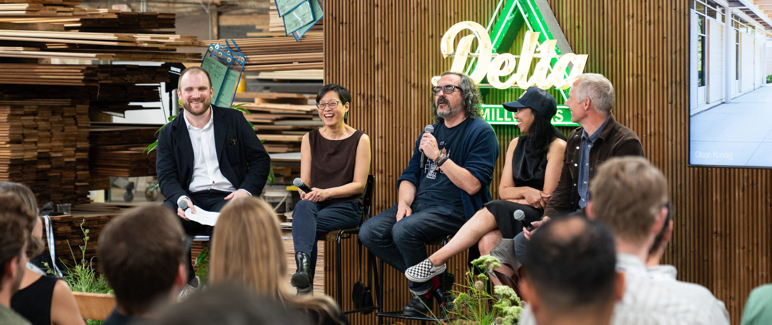 The sessions were followed by two in-depth panel discussions. The first, Wood and Architecture: Sustainability, Beauty, and High Performance, brought together Katherine Chia of Desai Chia, Todd Kennedy of CCY Architects, John Riordan of Olson Kundig, and Meryati Blackwell of Marlon Blackwell Architects, moderated by Dezeen’s US Editor, Ben Dreith.