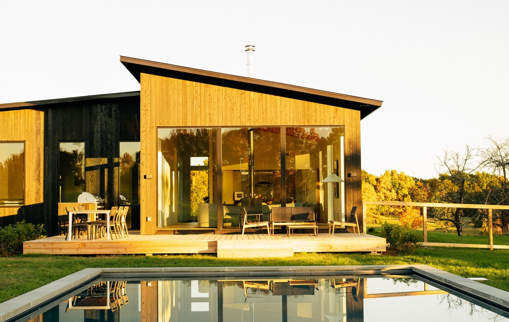 “RIFT comes complete with a standalone carport and customizable additions such as a heated saltwater pool, a heated pavilion with outdoor kitchen, Delta Millworks black-stained cedar siding, an electric car charger, and more.”