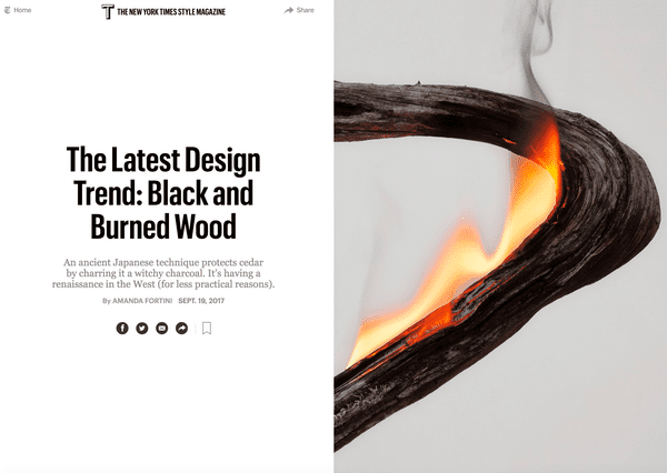 An ancient Japanese technique protects cedar by charring it a witchy charcoal. Its having a renaissance in the West. Read more here.