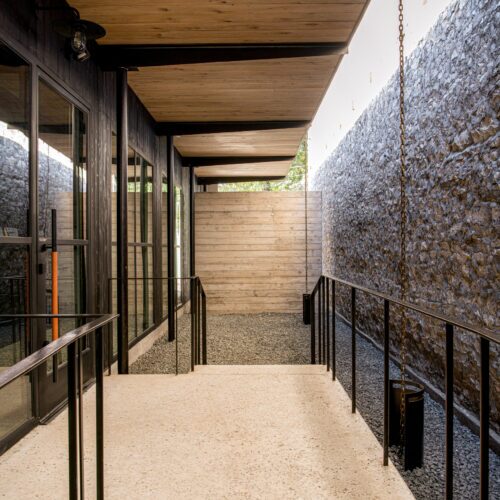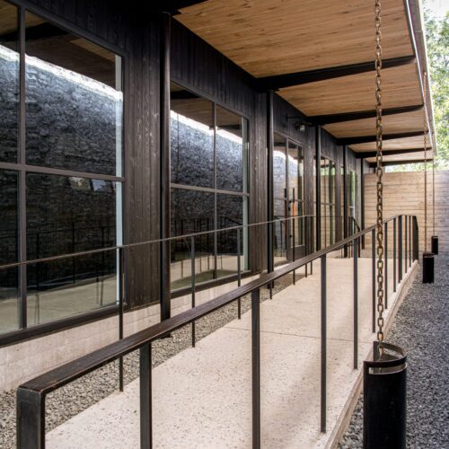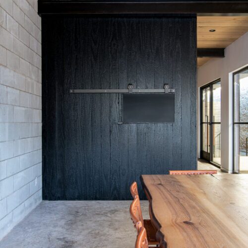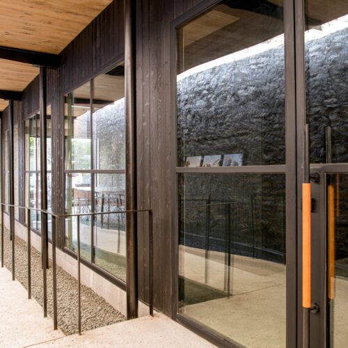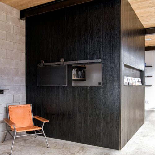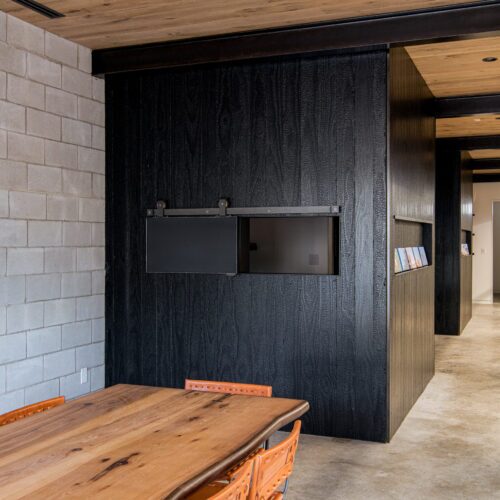 Behind the building’s traditional stone facade, Garnett specified Delta’s Western Red Cedar in Dire Wolf as well as Kebony Gator to form a sophisticated, modern workplace.