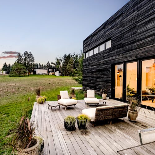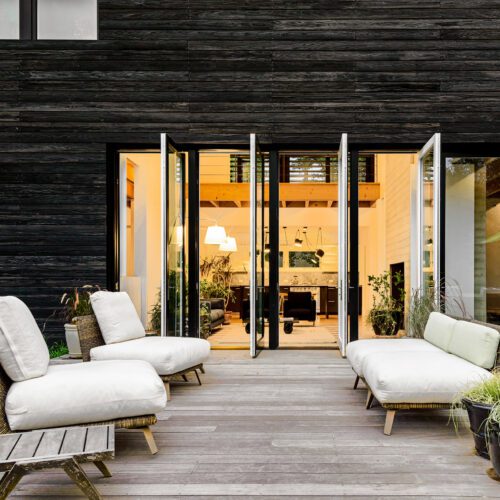 Using our Shou Sugi Ban charred wood, the exterior cladding is made with sustainable, high performance material that has the added advantage of being maintenance free and protected from rot, decay and insects.