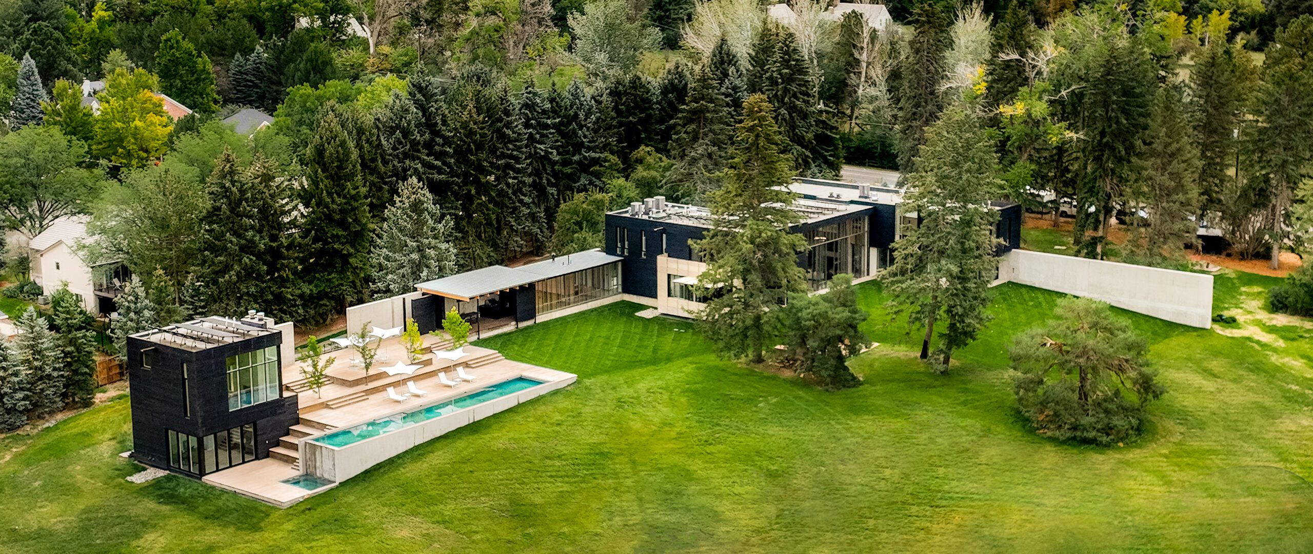 Denver’s most expensive listing features charred wood siding on the main residence, guest house, and treehouse.