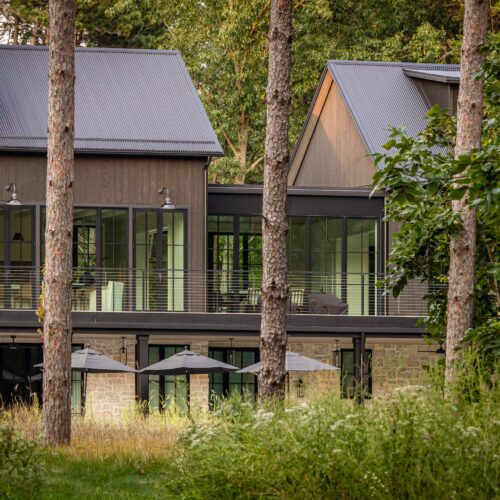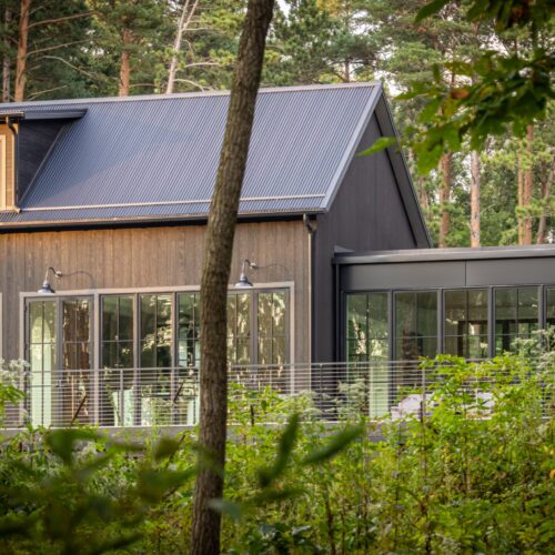 Clad in Accoya Barnwood finished in Delta Black, with a Custom Gray Accoya deck that stretches into the trees, the home balances drama and restraint. It’s quiet, grounded, and made to last.