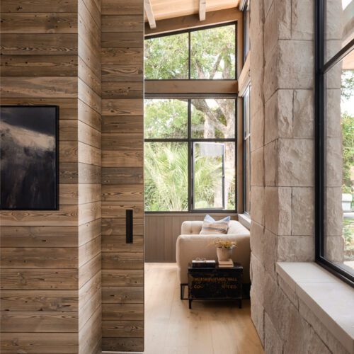 This sprawling residence in Austin incorporates a diverse selection of woods that prioritize durability, sustainability, and aesthetics.