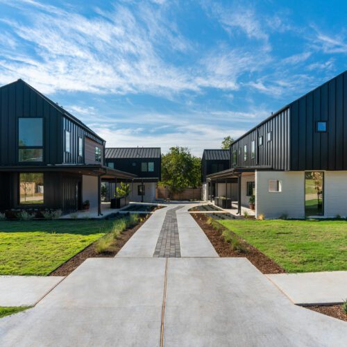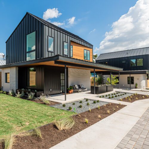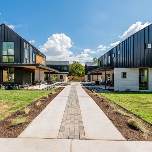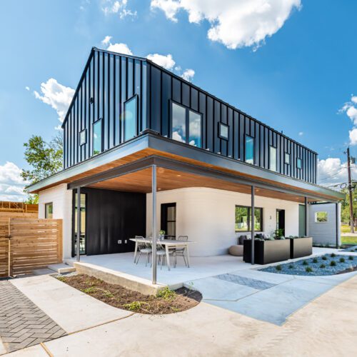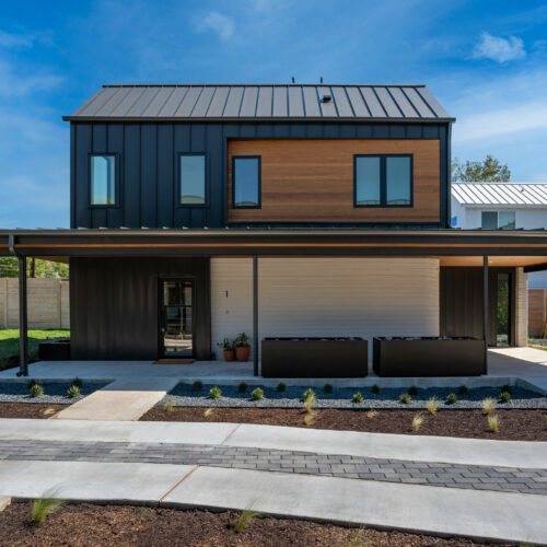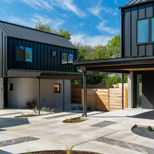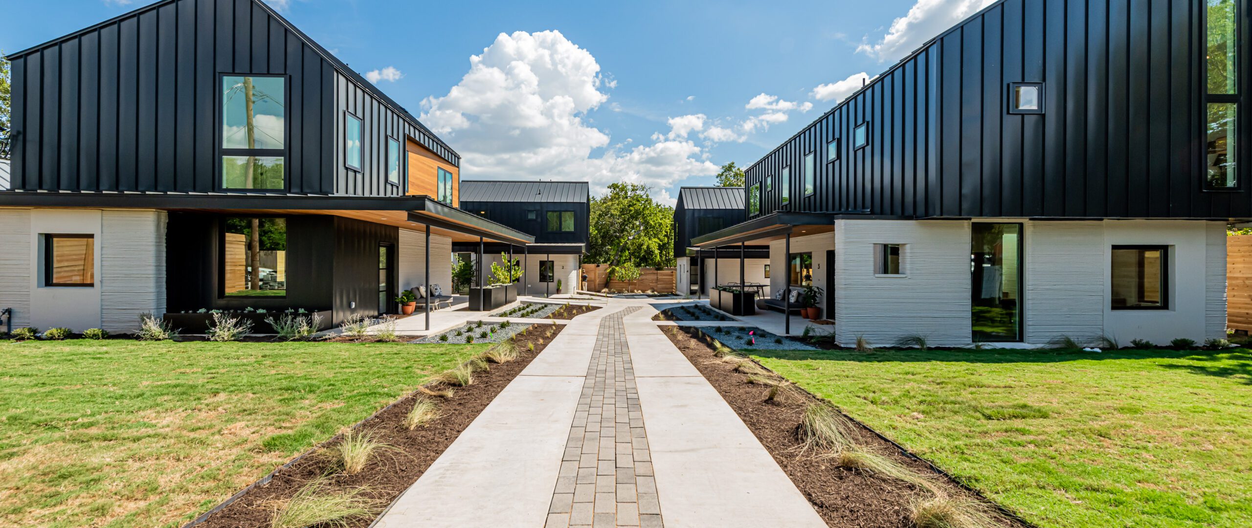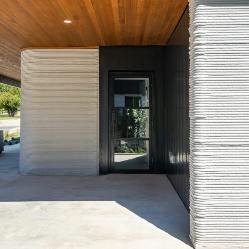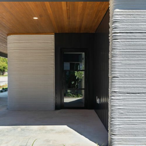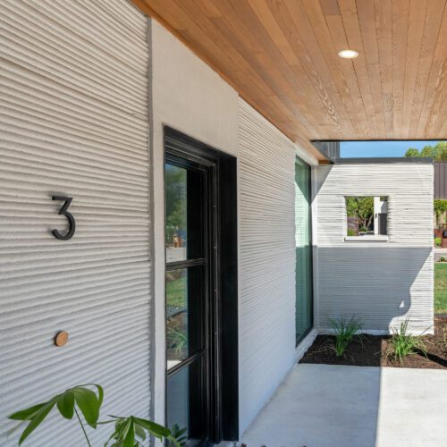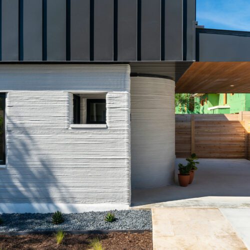 Dubbed East 17th Street Residences, the landmark project features four reasonably priced homes with a mash-up of construction methods. The first floor of each is printed using the same technology ICON used to create its first tiny home, a village in Mexico, and a community for the homeless: Atop a concrete slab, the robotic arm of a printer, the Vulcan II, meticulously extrudes layers of a cement-like material called Lavacrete. The results are walls with the texture of meringue, but the strength of mortar.