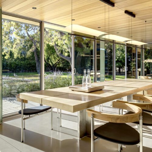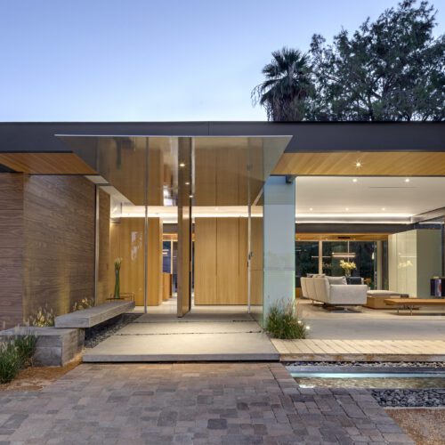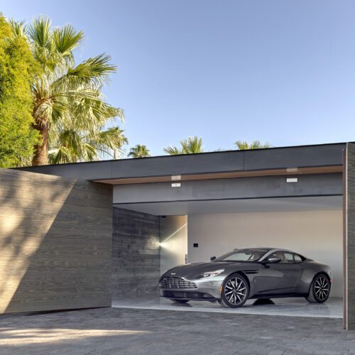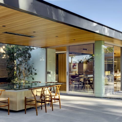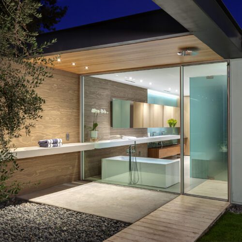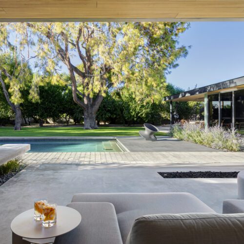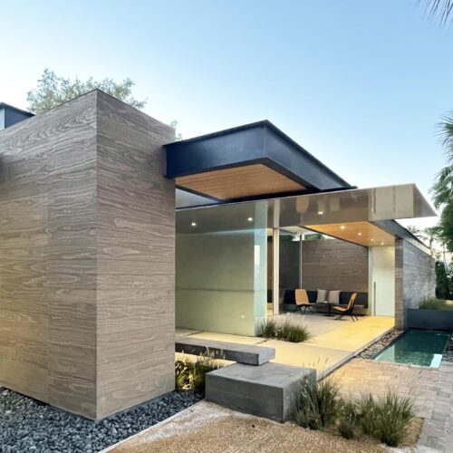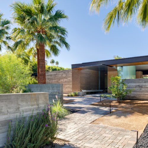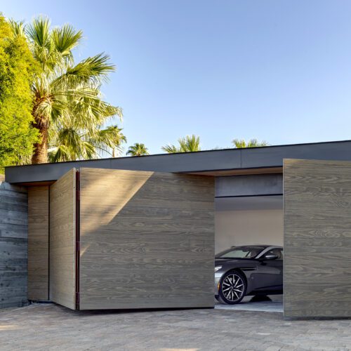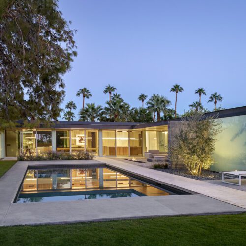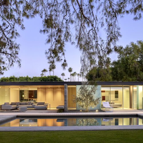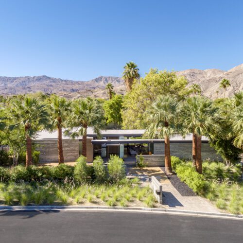 This sleek and modern private residence in Palm Springs sits low on the land and celebrates the natural beauty that surrounds the property.