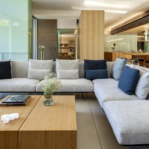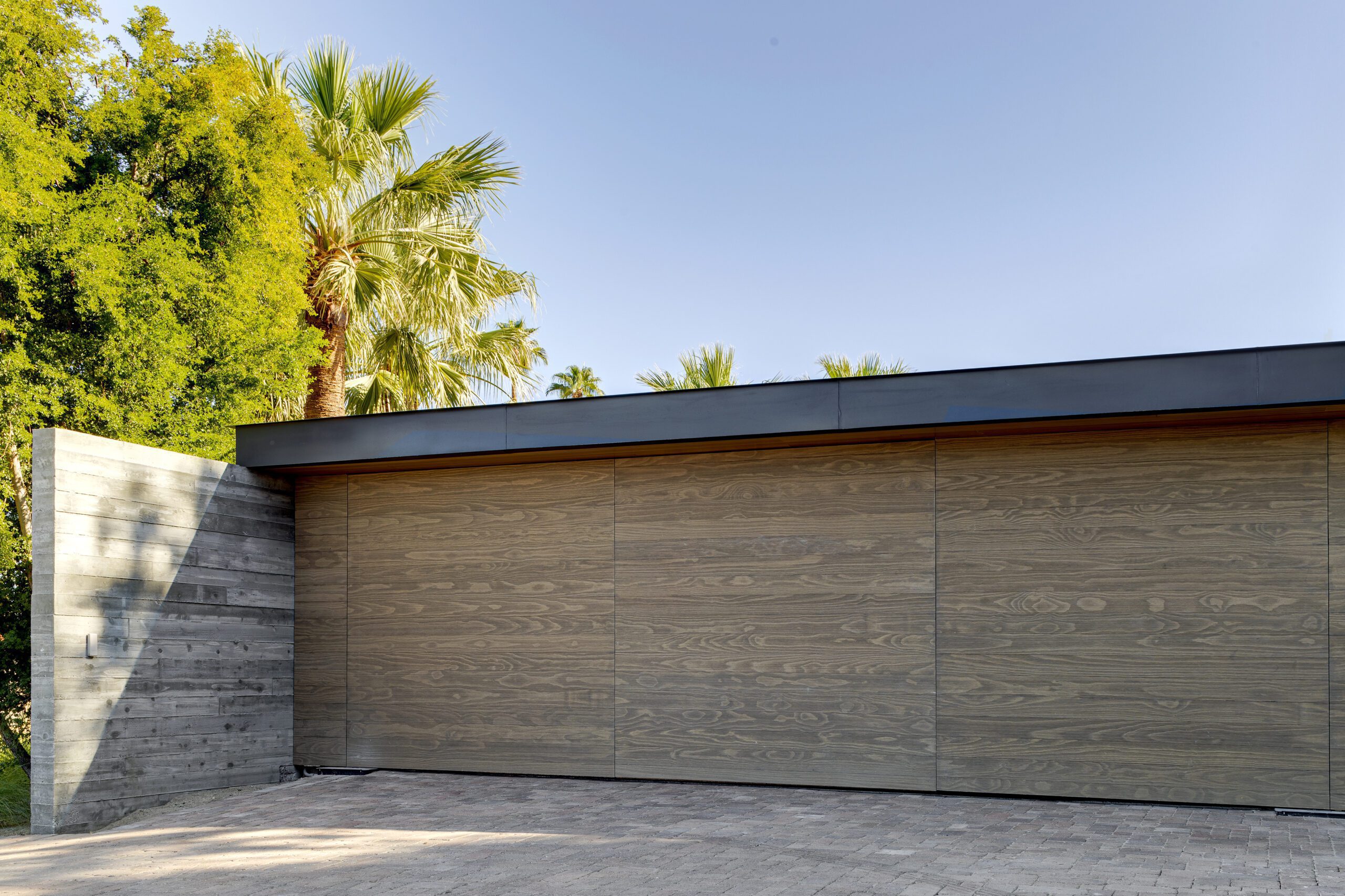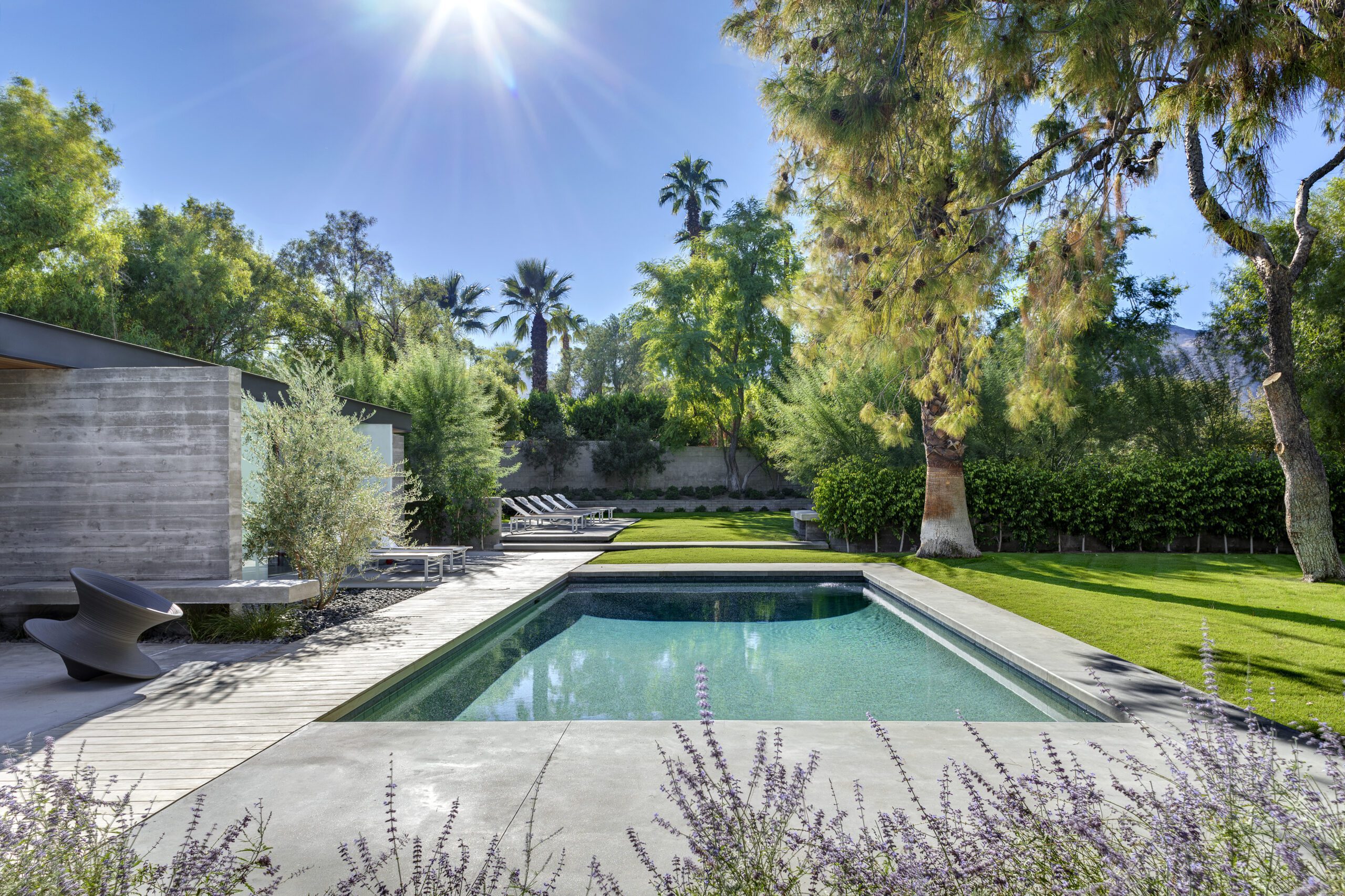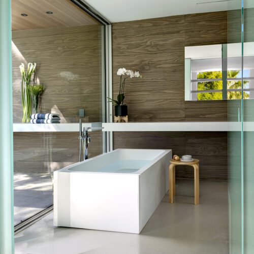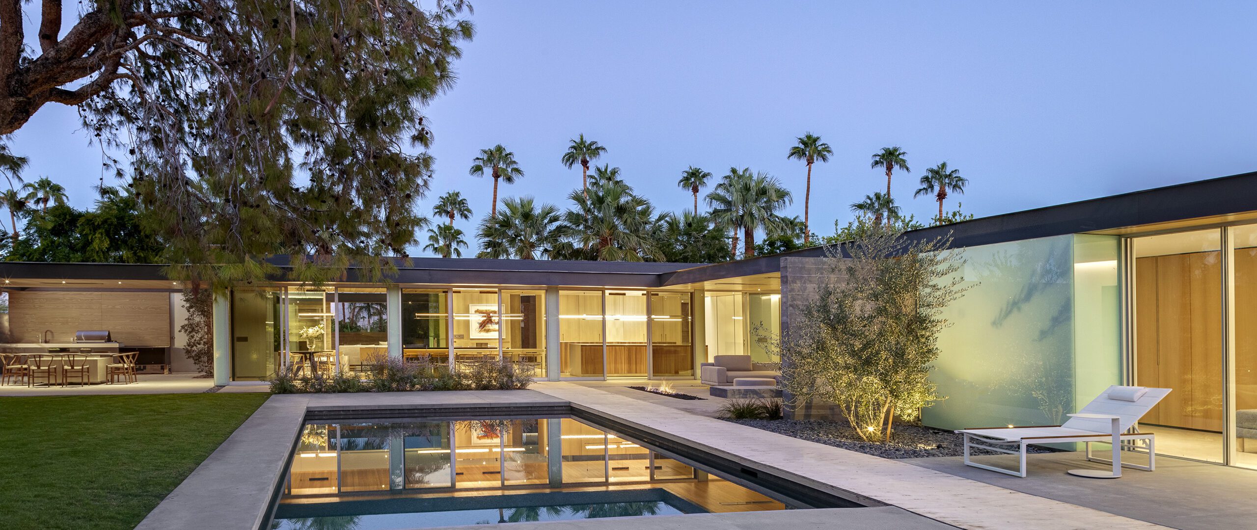 This sleek and modern private residence in Palm Springs sits low on the land and celebrates the natural beauty that surrounds the property.
