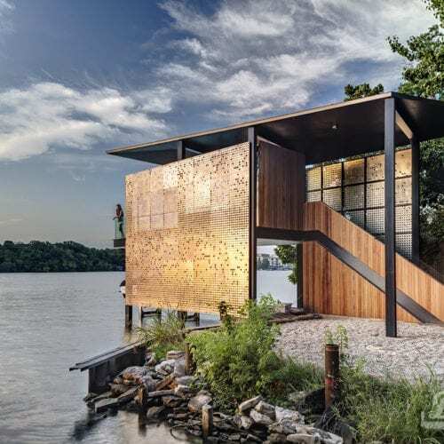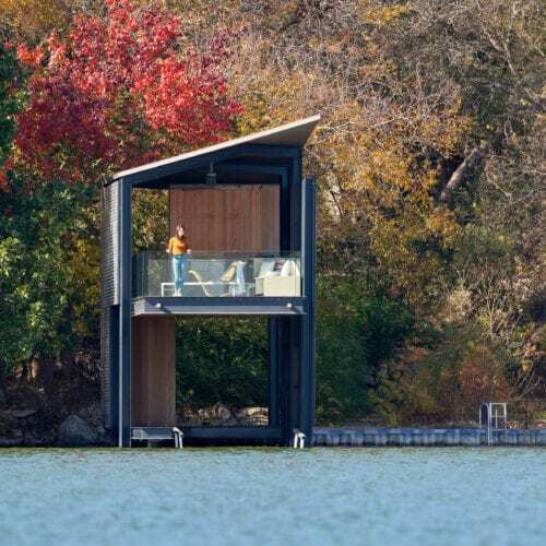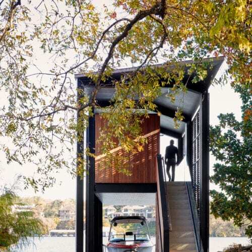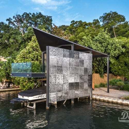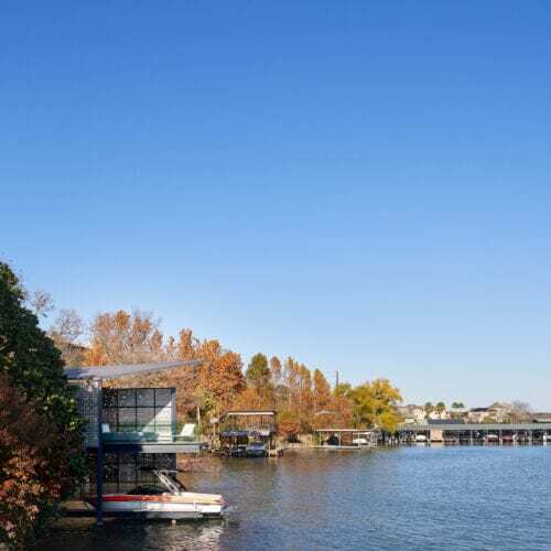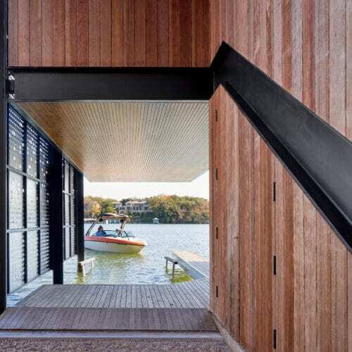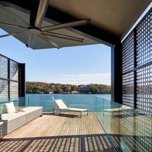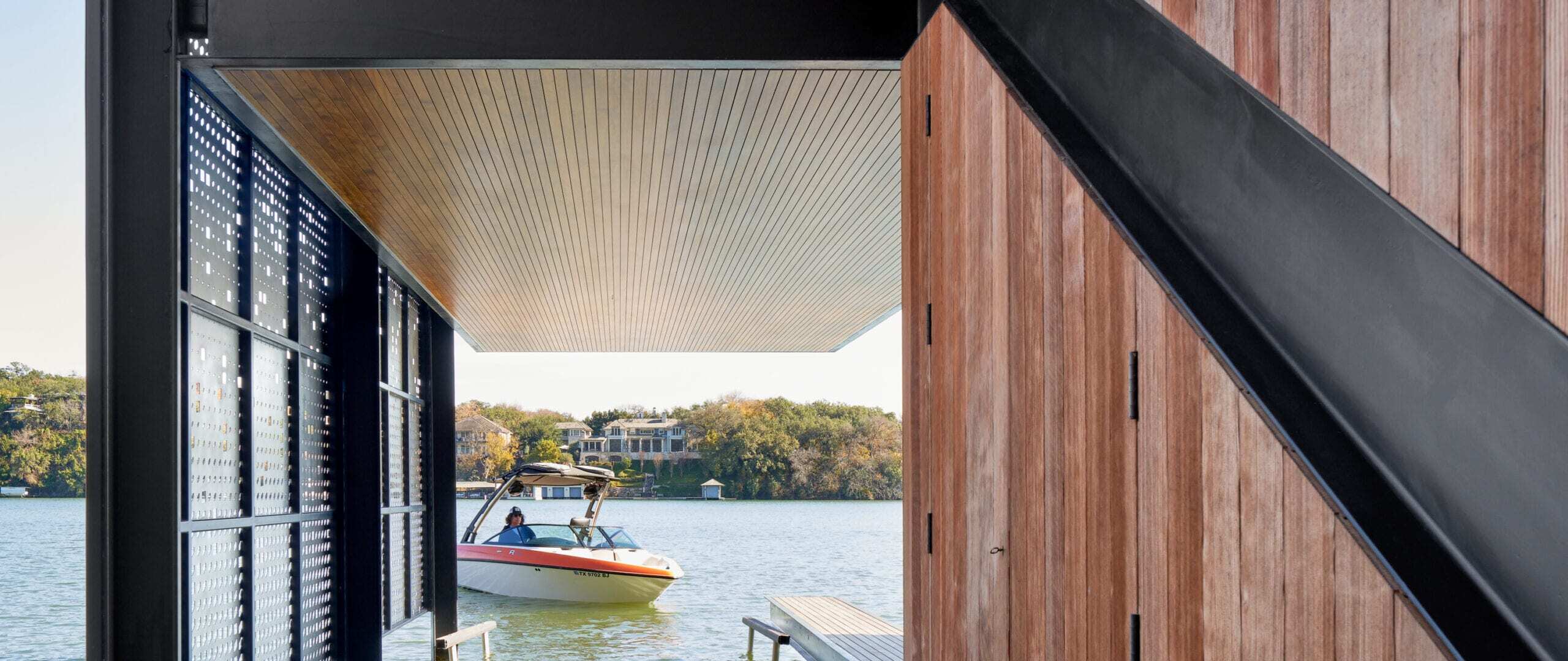 This lakeside dock in Austin, Texas, features Douglas Fir Vertical Grain decking, chosen for its strength, timeless texture, and natural beauty.