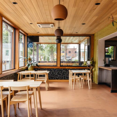 Western Red Cedar animates the environment of this restaurant in Nashville, Tennessee, giving this hospitality space the atmosphere of a domestic kitchen or living room.