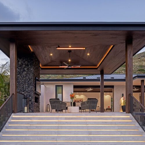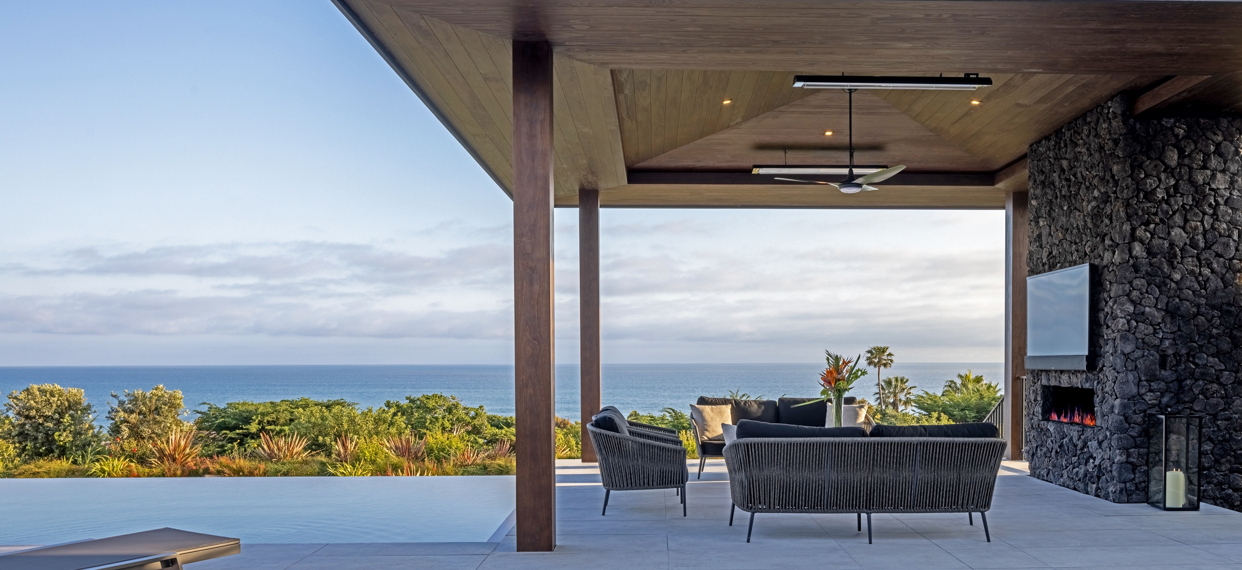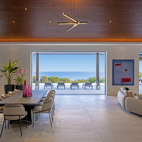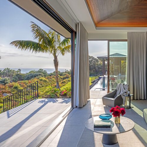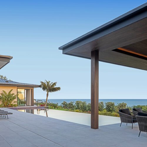 Warm, custom-colored Accoya connects indoor and outdoor living at this net-zero carbon home in Malibu, California. Wood-framed apertures permit breathtaking ocean views.