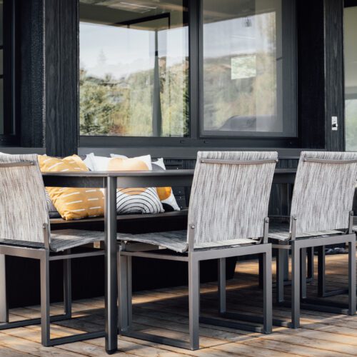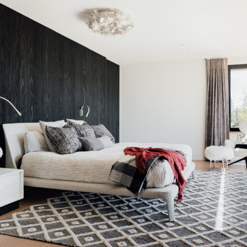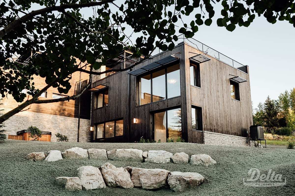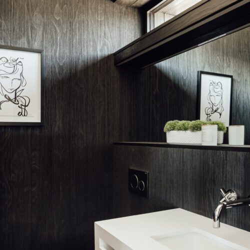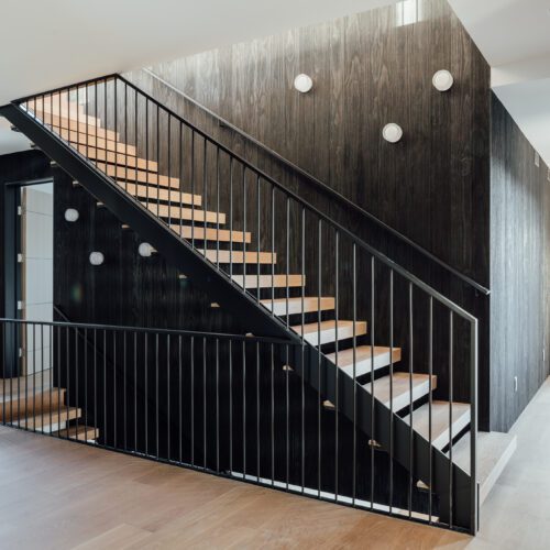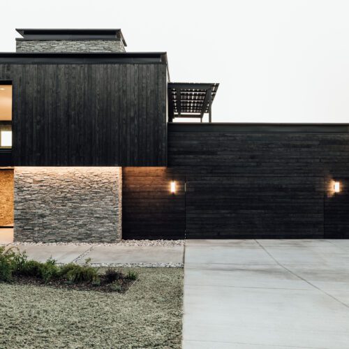 Exterior walls are clad in wood that was burnt using Shou Sugi Ban, an ancient Japanese technique. The charring “improves the longevity of the wood, and inherently has a distinct aesthetic that we liked” said Price.
