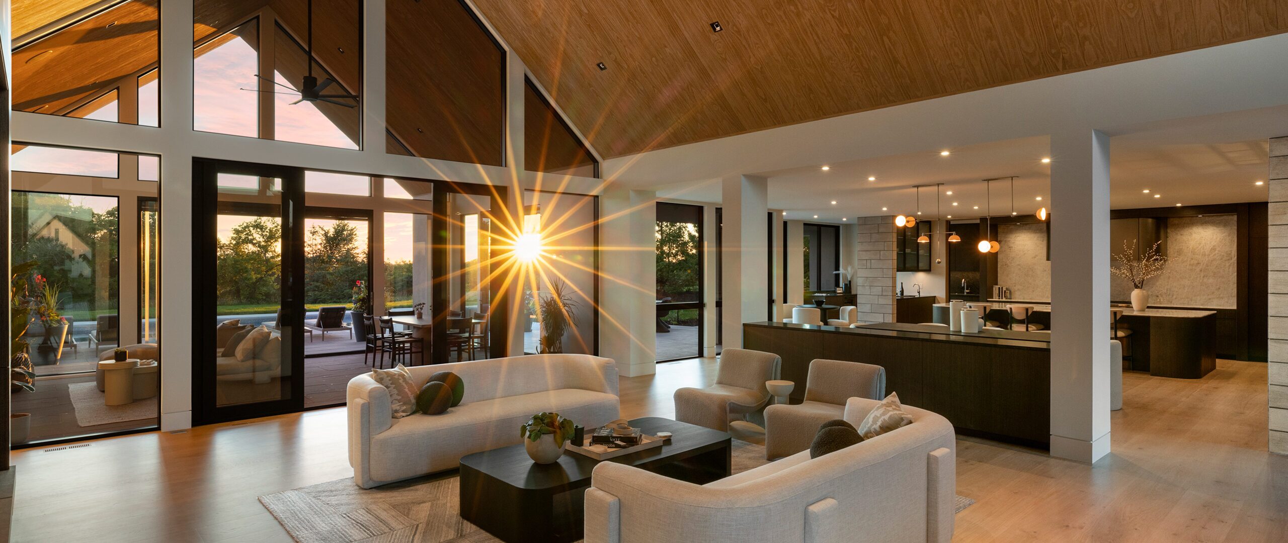 Set in Long Lake, Minnesota, this Modern Sanctuary is clad in Accoya Barnwood Light Ivory, creating a tranquil, contemporary retreat.