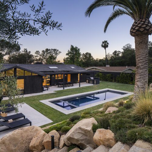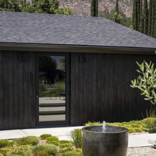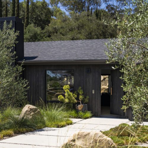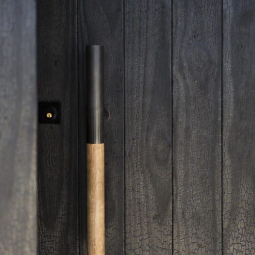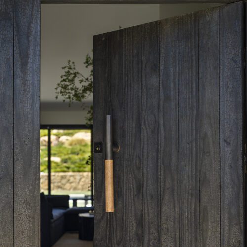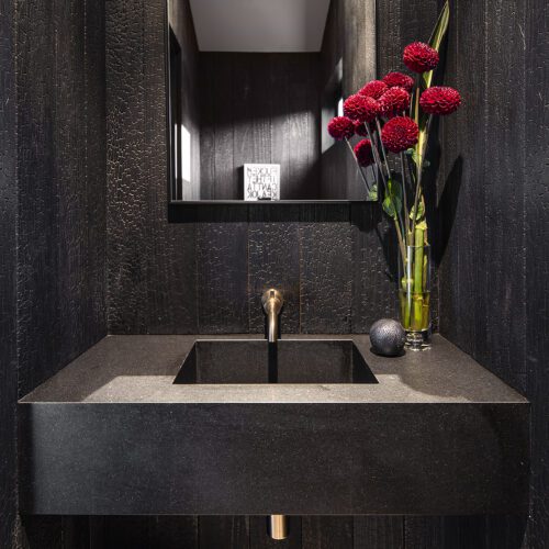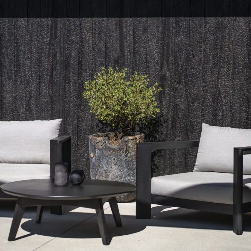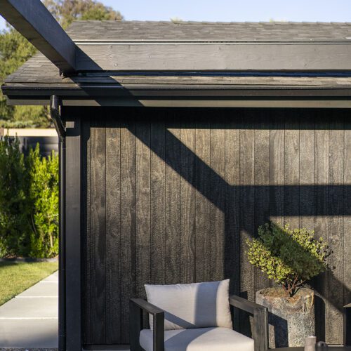 This serene retreat is fully wrapped in Accoya Shou Sugi Ban Gator, from exterior siding to interior detailing.