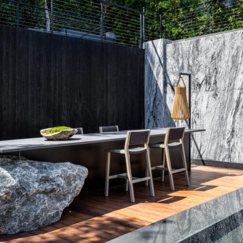 Varying chars on the Accoya, Kebony, and Thermally Modified woods that adorn the facade and interior spaces provide a visually compelling experience. An interior garden centers the home and reiterates the celebration of earth, wood, and the outdoors.