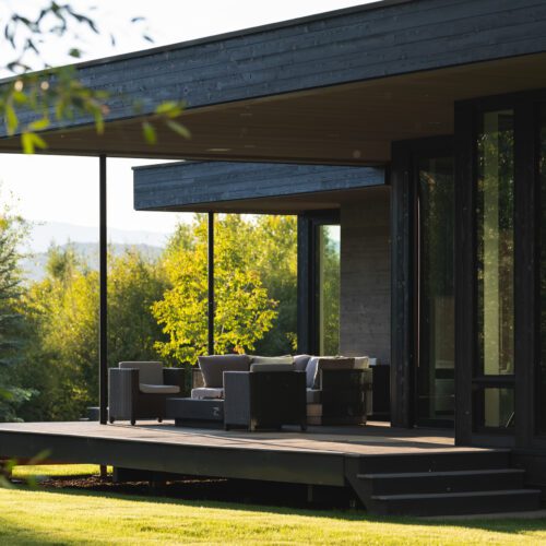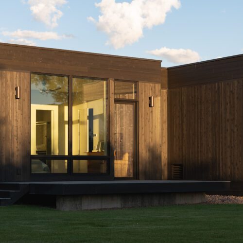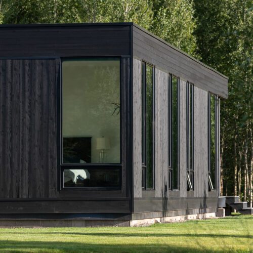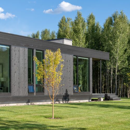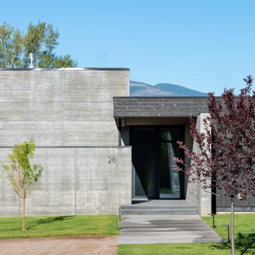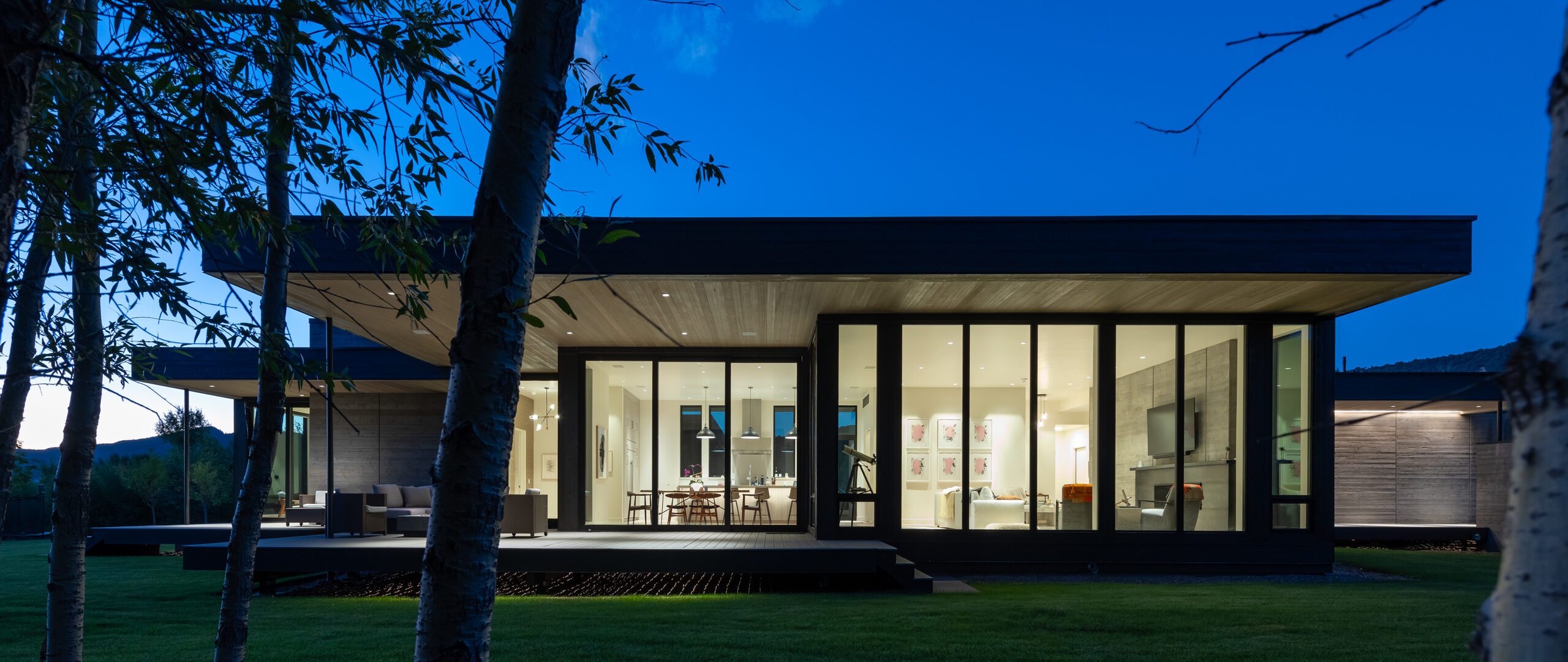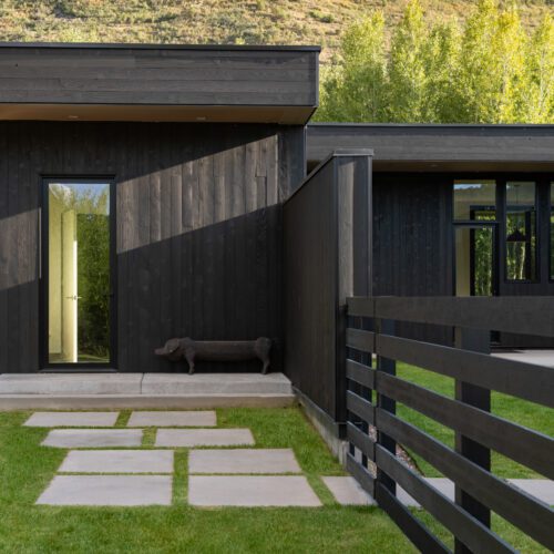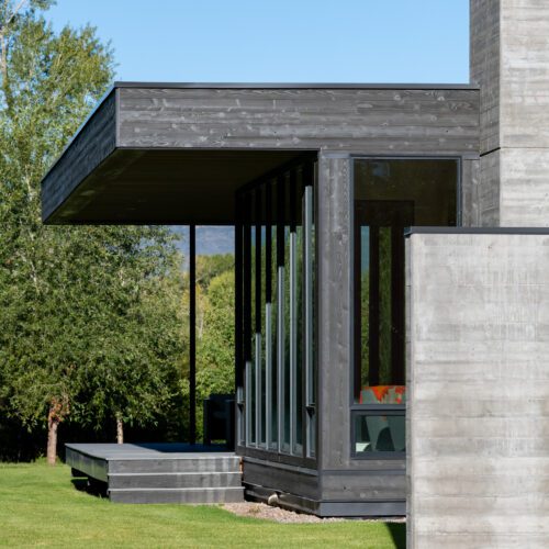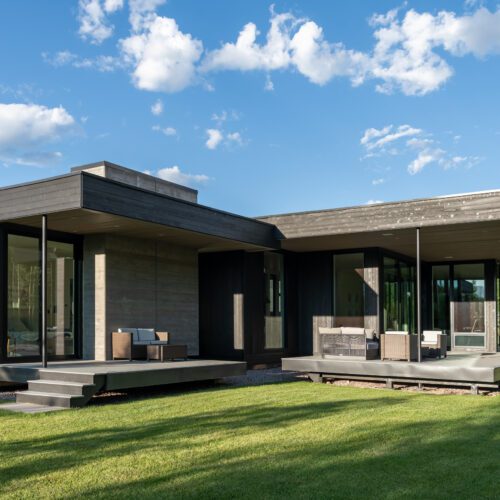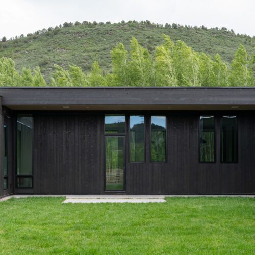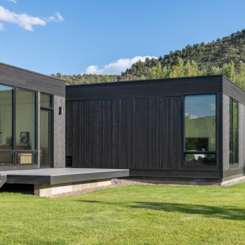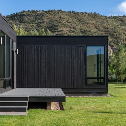 Large expanses of Western Red Cedar in our signature smooth Delta Black work alongside board-formed concrete to create a striking modern home in Carbondale, Colorado.
