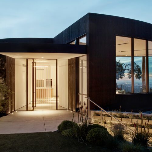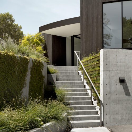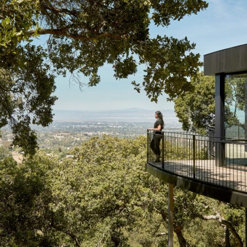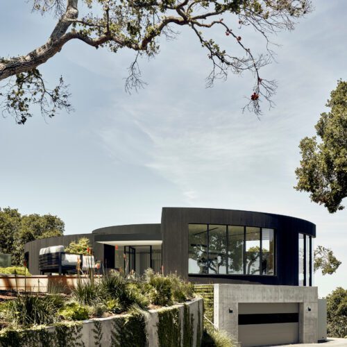 This uniquely shaped home in Los Altos Hills, California takes full advantage of its surroundings and adapts to challenging site conditions to create a singular residence.