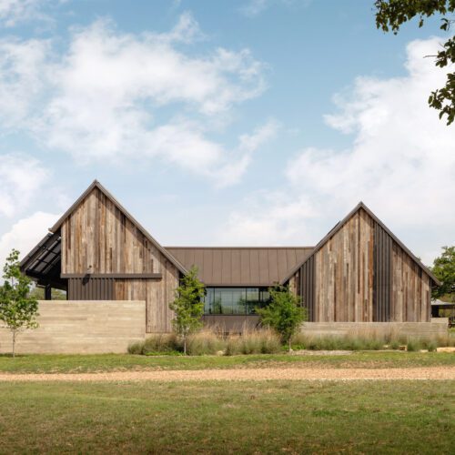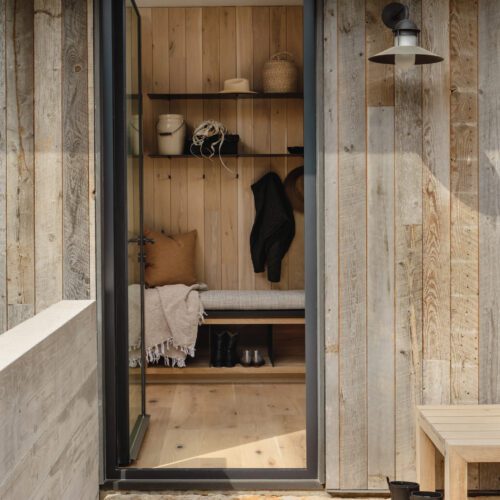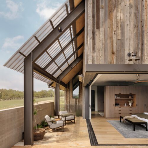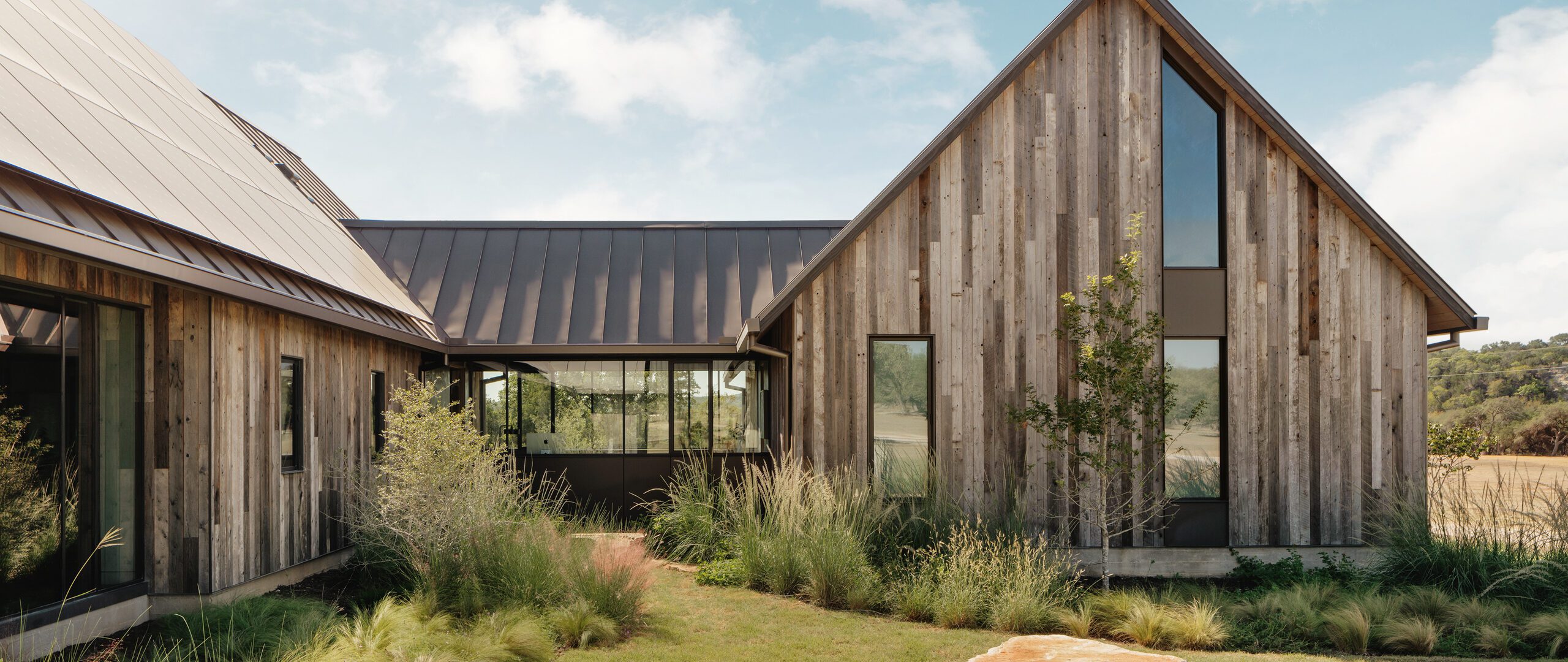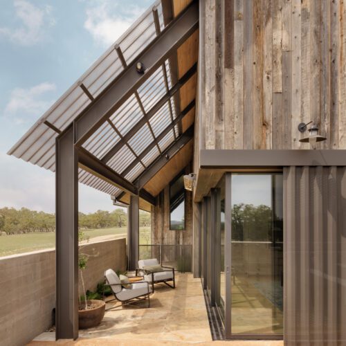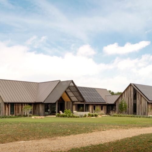 “Jobe Corral Architects updated this property with a new main house that unifies the site’s original structures. Reclaimed wood siding from Delta Millworks blends with a standing-seam metal roof.”
