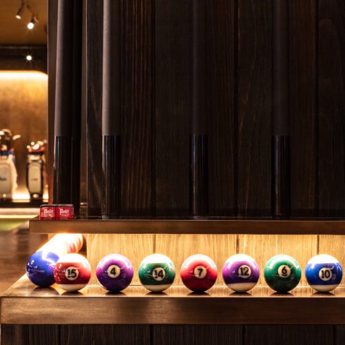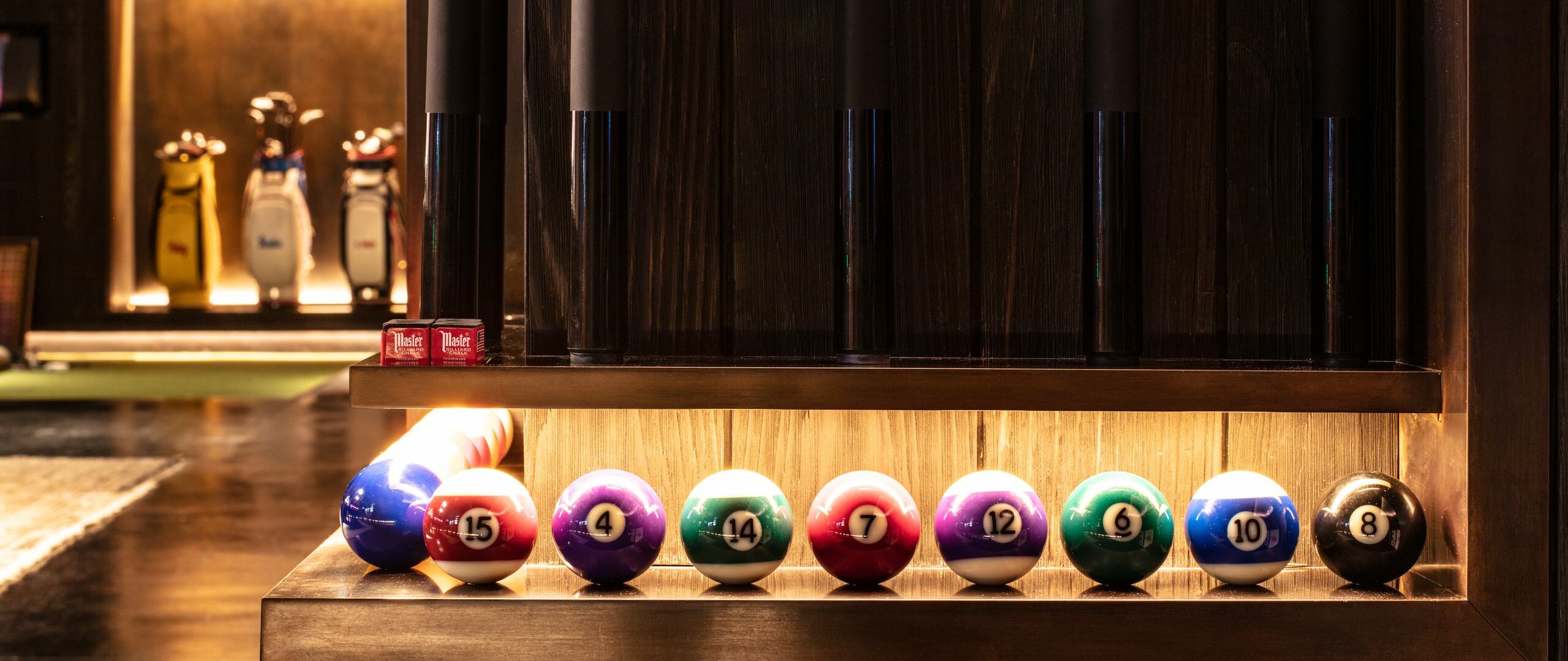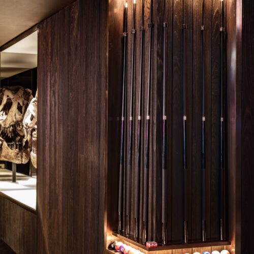 The textural richness of the wood sets the billiards and lounge areas apart from other areas of the home.