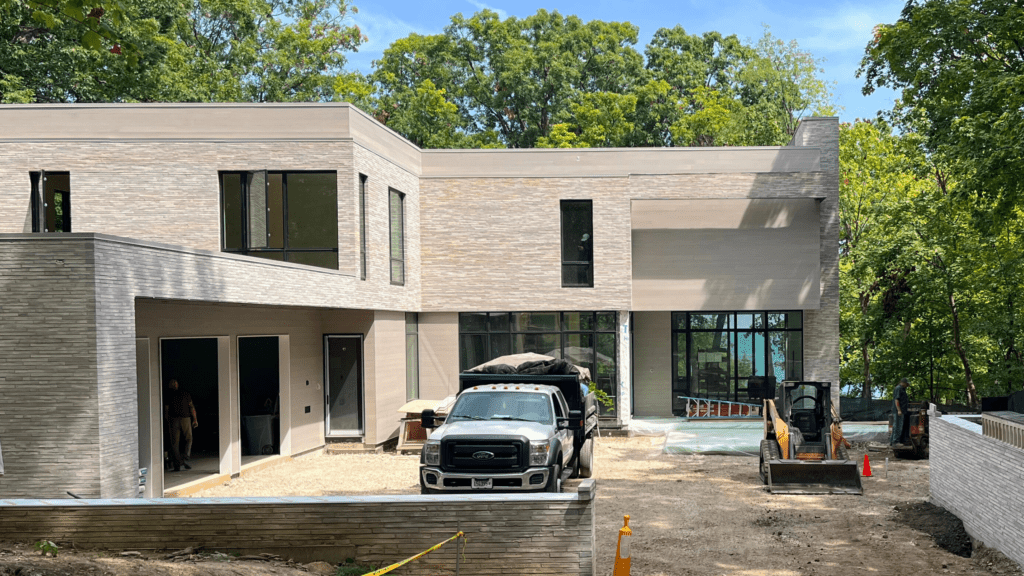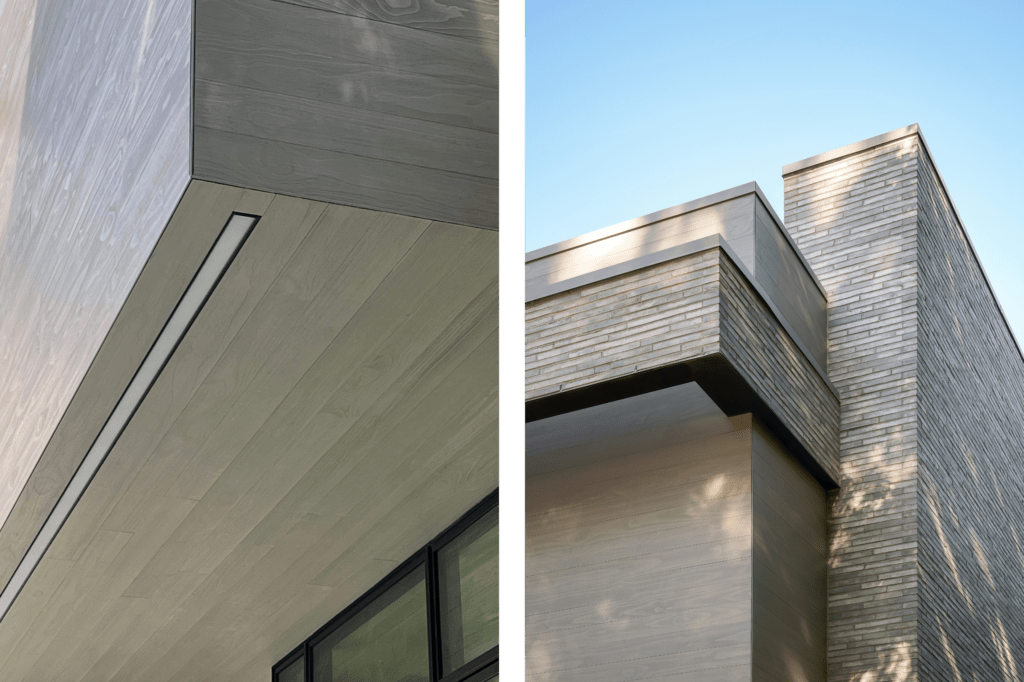 A defining moment in the project came with the cantilevered second floor above the entry. “The wood cladding was expertly coursed and wrapped to create the effect of a floating volume, giving the architecture a sense of lightness and lift” the team said. “That space below became a dramatic, sheltered arrival point, and seeing that detail executed so precisely was incredibly rewarding. It’s a clear expression of the design intent—modern yet warm, sculptural yet grounded.”