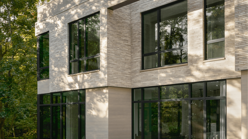 Delta’s Accoya finished in Morning Dew became central to achieving that quiet strength. “Given the home’s exposure to Lake Michigan winds and the clients’ desire for lower-maintenance materials, it was important to specify a siding product that could withstand the elements without compromising the design vision. Delta’s Accoya delivered the performance we needed, along with a finish that felt soft and natural, complementing the handmade Danish brick and supporting the goal of a warm, quiet, and enduring palette.”