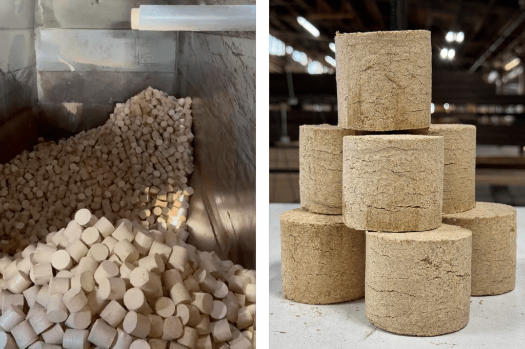 Instead of collecting loose dust and shavings that require frequent hauling and disposal, the system compresses the material into dense briquettes. These compact blocks reduce the overall volume of waste leaving the shop by 75%.